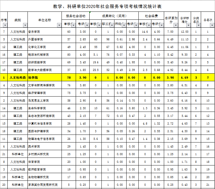 法学院2020年社会服务专项考核统计位居第7位