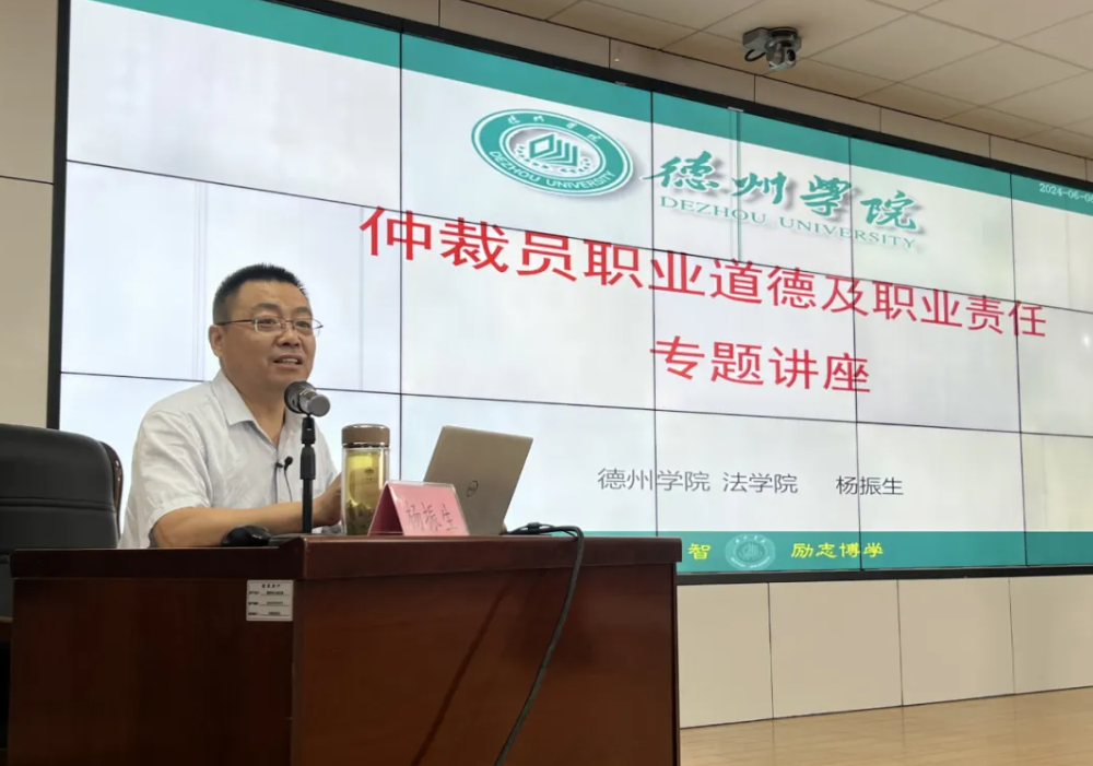 6月6日,德州仲裁委员会举办仲裁员能力提升专题培训班,法学院副院长杨振生应邀为培训班授课。德州仲裁委员会办公室全体工作人员和400余名仲裁员参加培训活动。