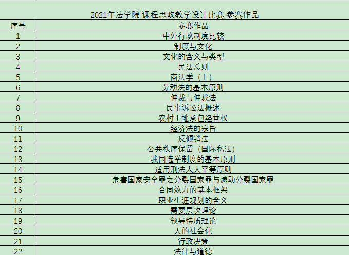 为全面推进课程思政建设,推动教师承担起“课程思政”主体责任,充分发挥专业课程的育人功能,法学院举办了本次的课程思政教学设计大赛。本次大赛以“立德树人 课程育人 匠心塑人”为主题,分为比赛和分享两个阶段。