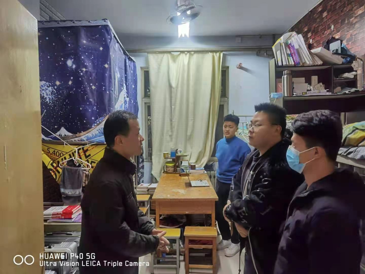 2021年3月1日,法学院第二教师党支部书记陈伟到八号公寓学生宿舍进行走访,陈伟深入各个宿舍询问学生的到校情况,了解部分同学未到校的原因。